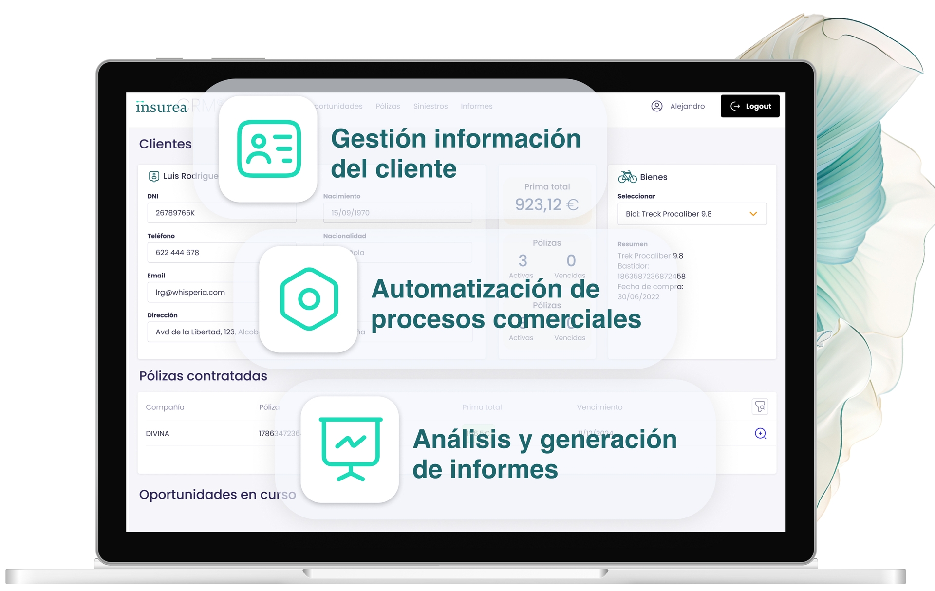 Puede integrarse con otros sistemas internos de la compañía, como sistemas de gestión de pólizas o contabilidad, para una gestión más eficiente y una visión holística de la información.